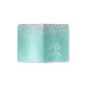 Teal Brushed Metal Silver Glitter Monogram Name Passport Holder