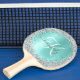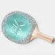 Easily personalize this trendy chic ping pong paddle design featuring pretty silver sparkling glitter on a teal brushed metallic background.
