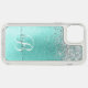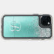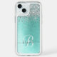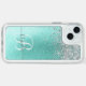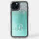 Teal Brushed Metal Silver Glitter Monogram Name Speck iPhone Case