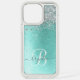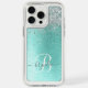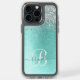 Teal Brushed Metal Silver Glitter Monogram Name Speck iPhone Case
