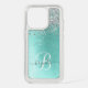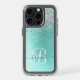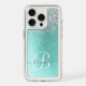 Teal Brushed Metal Silver Glitter Monogram Name Speck iPhone Case