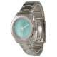 Teal Brushed Metal Silver Glitter Monogram Name Watch
