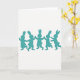 This card shows five stylized bunny figures in a uniform teal tone, lined up in a horizontal row on a white background 🐰. Each one has long ears and a tiny tail, and they’re holding hands in an unbroken chain that reads like close friendship and a gentle, affectionate togetherness. Their bent knees and outstretched arms suggest a shared skip, like they’re moving in step and keeping pace for one another. The open white space around them keeps the focus on their silhouettes, while faint shading adds a small sense of depth beneath their feet. Near the top, a short Easter greeting sits centered in soft gray lettering, leaving the figures to carry most of the story. The overall look stays simple and airy, with the teal shapes standing out clearly against the white. A small 🌷 icon appears near the lower right corner, tucked just above the bottom edge.