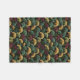 Teal Burgundy Vintage Ginkgo Leaf Pattern Fleece Blanket