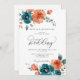 Teal Burnt Orange Rustic Fall Floral Wedding Invitation