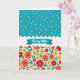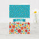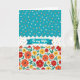 This greeting card features horizontal bands that guide your eye from a deep teal top section to a bright floral garden below. The upper area is dotted with scattered cream and burnt-orange circles, like confetti floating above a quiet, affectionate moment ❤️. A scalloped white border separates the top from a lighter band filled with tiny blue, orange, and yellow dots that feel like little sparks of closeness. Centered on that band sits a teal banner with a lightly textured look, carrying the words “To my Wife” in white lettering. The banner stretches across the middle, giving the message a cozy, intimate focus without crowding the design. Beneath it, stylized flowers spread across a white background in red, orange, and yellow, with contrasting centers in deep blue or bright yellow 🌼. Curving green leaves weave between the blooms, and the petals are simple and rounded, arranged in a dense cluster along the bottom half.