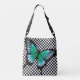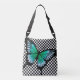 Teal Butterfly Classic Checker Cross Body Tote Bag