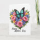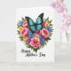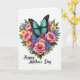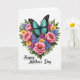 This design shows a teal-blue butterfly with wide wings outlined in deep black and dotted with small golden spots, resting above a heart-shaped cluster of flowers that feels like a gentle embrace ❤️. Around it, full pink blossoms with warm golden centers sit close together, as if leaning in like old friends. Smaller star-like flowers in soft periwinkle blue and bright yellow daisy-style blooms add light, cheerful contrast, while a few deep purple florets tuck into the gaps like quiet accents. Emerald-green leaves weave through everything, curving to reinforce the heart outline and giving the arrangement a cozy, gathered-together look. The background stays plain white, making the colors stand out while keeping the scene calm and airy 🌼. Near the bottom, a short line of flowing black lettering is centered beneath the bouquet, sitting just above the lower edge. The butterfly’s wings show a smooth sheen in the light, with the golden spots scattered across the teal like tiny sparks.