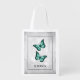 Bag your groceries in style with a Teal Butterfly Floral Personalized Reusable Grocery Bag. Bag design features a pair of vibrant butterflies resting on a white floral vine against a light gray grunge background. Additional gift items available with this design as well as a variety of colors.