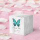 Elegant and simple Wedding favor box featuring a Teal Butterfly against a gray grunge background. This chic and simple design is a unique choice for a modern wedding. Easy to customize with your wedding details. Click "Customize It" to find more personalization options.