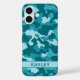 Customize this teal camouflage iPhone 16 case with your name in a trendy modern CAP font in dark teal on light teal. It's so modern, girly and trendy! Perfect for any country girl!