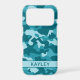 Customize this teal camouflage iPhone 17 pro case with your name in a trendy modern CAP font in dark teal on light teal. It's so modern, girly and trendy! Perfect for any country girl!
