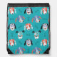 Teal Cartoon Dog Faces Pattern Drawstring Bag