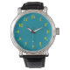 You will show off good taste wearing this teal-faced and gold-numbered watch.