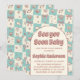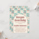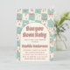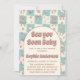 Teal Checkerboard Seashell Bow Baby Shower Invitation