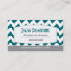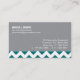 A teal and white chevron pattern is dominant on this card that features a bulging frame to hold business information. A grey panel on the bottom contains a website url or any other information. Further contact and business information prints on the back against a gray background accented by a chevron strip. A versatile card for consultants, creative businesses, home-based businesses plus many more. Available in alternate colors with matching products.