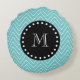 Teal Chevron Pattern | Black Monogram Round Pillow