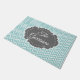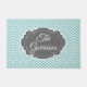 Add a welcome feeling to your front door with a Teal Chevron Personalized Doormat. Doormat design features a teal chevron background and an ornate gray tag to personalize with your name and monogram. Additional items available with this design as well. Please contact me directly for assistance with personalization.