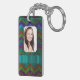 Teal chevron personalized photo template keychain