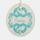 Elegant and sophisticated Chic Damask Ornament featuring a soft beige background and a stylish damask flourish embellishment in turquoise. This modern design is easy to customize with your own text. Click "Customize It" to find more personalization options.