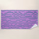This beach towel has an art deco design that looks like likes on a circuit board. The lines are running vertically in teal on a field of purple. Want a different color? Message me.