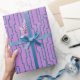 This wrapping paper has an art deco design that looks like likes on a circuit board. The lines are running vertically in teal on a field of purple. Want a different color? Message me.