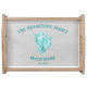 Serve meals or beverages for family or guests with this elegant Teal Conch Shell Serving Tray. Serving Tray design features a vibrant vintage conch shell and custom text for you to personalize with your family name against a light gray paper textured background. Additional home decor items available with this design.