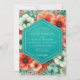 Teal Coral Bloom Romance Wedding Invitation
