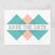 Teal Coral Geometric Triad Save the Date Postcard