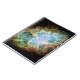 A mosaic image of the Crab Nebula in intense shades of turquoise, teal, yellow and orange, taken by the Hubble Space Telescope.