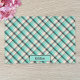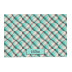 Lovely plaid pattern in teal / turquoise, light beige / cream and gray color scheme together with a personalizable text area for a name.
