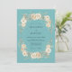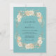 Delicate cream blossoms and soft greenery artfully arranged in a flowing arch create an ethereal atmosphere. This design evokes romance and timeless elegance with its serene teal backdrop. A beautiful choice for a sophisticated celebration.