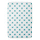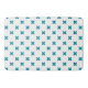 Teal cross stitches on white bath mat