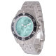 Has heft and feel of expensive stainless steel quartz watches. Good band with safety catch. I removed links, which is easy because engraved arrows show direction to push the linking pins. As always by this seller, the image (a railroad logo) is a perfect reproduction of my emailed image, and is precisely spaced and aligned.
