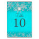 Teal Blue Crystal Pearl Snowflake Silver Winter Wedding. Winter Wonderland Winter Wedding Table Number Card. Elegant crystal snowflake design. Please note all flat images!