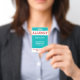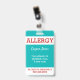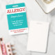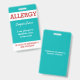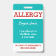 Teal Custom Kids Food Allergy Alert Red Warning Badge. Attach via a lanyard, metal clip, or retractable clip to a book bag, medicine kit or for a child to wear. Customize with your allergies, contact info or emergency instructions. Edit to change font and background colors or text style. Info can be written on front or backside. www.LilAllergyAdvocates.com