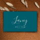 Easily customize this elegant script teal business card template with your name, contact details, and QR code for a great calling card. This stylish dark teal green and cream business card with modern stylish script can be edited for your purposes. Add your name and tagline or business on the front. On the back is a place for more custom text and your QR code. The simple stylish custom business card would be ideal for an interior designer, a sports therapist, a life coach, a financial advisor, a beautician, make up artist, spa, hair and nails specialist.