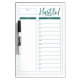 The board is very high quality and heavy! We wanted to put it on our fridge, but there was no way to attach it with magnets. We tried bag clips with magnets, but the board was still heavy after using 4. We purchased a roll of magnetic tape. Adhesive on one side, magnet on the other. Works great. Other problem is that it comes with a black dry erase marker. Why not an option to choose a white one? Had to purchase a chalk dry erase marker from Amazon, but after all that, board works great! Wife loves it. Printing is beautiful. We went with stock except changing to our last name. Looks great!