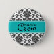 Teal Damask Bride's Crew Button