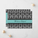 Elopement announcement cards in elegant turquoise blue, black and white classic floral damask pattern, fully customizable with your names and wedding details, the perfect way to announce your elopement to friends and family. Available in a wide range of matching wedding products.