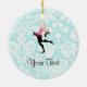 Teal Damask Pattern Ice Skating Ceramic Ornament