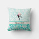 Teal Damask Pattern Ice Skating Throw Pillow