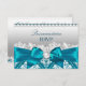 Teal Quinceañera RSVP. Elegant Teal and white damask design with pearl silk bow. Customize with your own details. Please note: All flat images. They do not have real bows, lace or jewels!