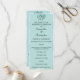 A very elegant, custom wedding program in soft aqua / teal, part of the ''Teal Damask'' matching set of wedding stationery featuring a light teal and white damask pattern with teal ornament.