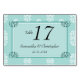 A very elegant, custom wedding table place card in soft aqua / teal, part of the ''Teal Damask'' matching set of wedding stationery featuring a light teal and white damask pattern with teal ornament. If you require several of these cards for different table numbers, simply change the table number, place the product in your basket, and repeat the process before checking out for as many times as you need.