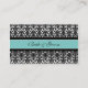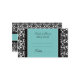 Wedding table place setting cards in elegant turquoise blue, black and white classic floral damask pattern, also available in many matching wedding products, contact us to request a color change or custom design.