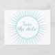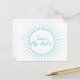 Sophisticated and elegant Deco Retro Save the Date Postcard in turquoise featuring a circular art deco ornamental sunburst design. Easy to customize, simply add your wedding details in the text fields provided. Click "Customize It" to find more personalization options.