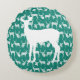 This pretty deer design round pillow is perfect for anyone who loves deer, animals, wildlife,and fun designs! Features several small rustic white deer silhouettes on a background of bright teal with a big white silhouette doe on front, buck on back. This deer pillow is perfect for the living room, den, family room, family cabin on the lake, and of course it makes a great gift.