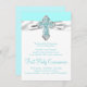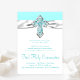 Teal Diamond Cross Girls Teal Blue First Communion Invitation