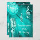 Teal Disco Ball and Retro Microphone 55th Birthday Invitation